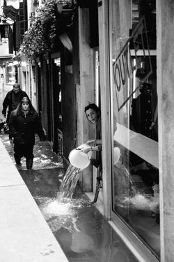 Una Venezia estranea allo sguardo del turismo di massa, alla ricerca di immagini tra le sue acque e i suoi canali. Riflessioni che restituiscono una città unica e viva, poggiata, come i piedi dei suoi abitanti, nelle acque della laguna che la circonda, la sostiene e la nutre. L'obbiettivo riporta un'umanità che nella città lagunare non sprofonda, ma vive l'acqua come quotidianità imprescindibile e vitale.